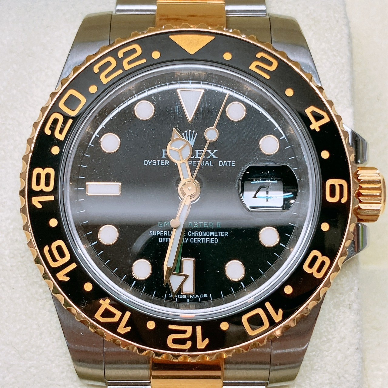 - 当店ホームページをご覧いただきありがとうございます。<div>おたからや小倉守恒店斉藤です。</div><div>今回は、北九州市小倉南区のお客様より、 ロレックス GMTマスターⅡ 116713 M番をお買取りさせていただき有難うございました。</div><div><br></div><div>ロレックス GMTマスターII Ref. 116713Mは、イエローゴールドとステンレススチールのコンビモデル(ロレゾール)で、2000年代半ばから2010年代後半にかけて生産されたモデルの特定のバリエーションを指します。</div><div>公式なリファレンスナンバーは116713LNですが、「M」はシリアル番号の頭文字として特定の製造時期を示唆するもので、モデル番号自体ではありません。 <br></div><div> ロレックス GMTマスターII Ref. 116713LNは2006年に登場しました。</div><div>これは、セラミック製ベゼル(セラクロムベゼル)を搭載した最初のGMTマスターIIシリーズの一つです。 <br></div><div> ステンレススチールと18Kイエローゴールドのコンビネーション(ロレゾール)を採用しており、堅牢なオイスターブレスレットを備えています。</div><div>ベゼルはブラックのセラミック製です。</div><div>ムーブメントは、当初はCal.3185を搭載していましたが、後に改良されたCal.3186に変更されました。</div><div>パワーリザーブは約48時間です。</div><div>ロレックスのシリアル番号は製造年を特定するもので、「M」シリアルは一般的に2007年〜2008年頃に製造された個体を示します。</div><div>そのため、Ref. 116713Mという表記は、その時期に製造された特定の個体を指す通称として用いられます。 <br></div><div>このモデルは、現代のGMTマスターIIの礎を築いた重要なモデルの一つです。</div><div>特に、ロレックスのスポーツモデルで初めてセラミックベゼルが採用されたことで知られています。</div><div>現行モデルはジュビリーブレスレット仕様で復活しましたが、このモデルは3連のオイスターブレスレットを特徴としていました。 <br></div><div>当店もブランド品はもちろん、時計・貴金属・アクセサリー・商品券・切手・古銭・古美術品・家電製品・など多種多様に買取りを行っていますので、お気軽にお立ち寄りください。</div><div>スタッフ一同皆様のお越しをお待ちしております。</div><div><br></div><div> <br></div>