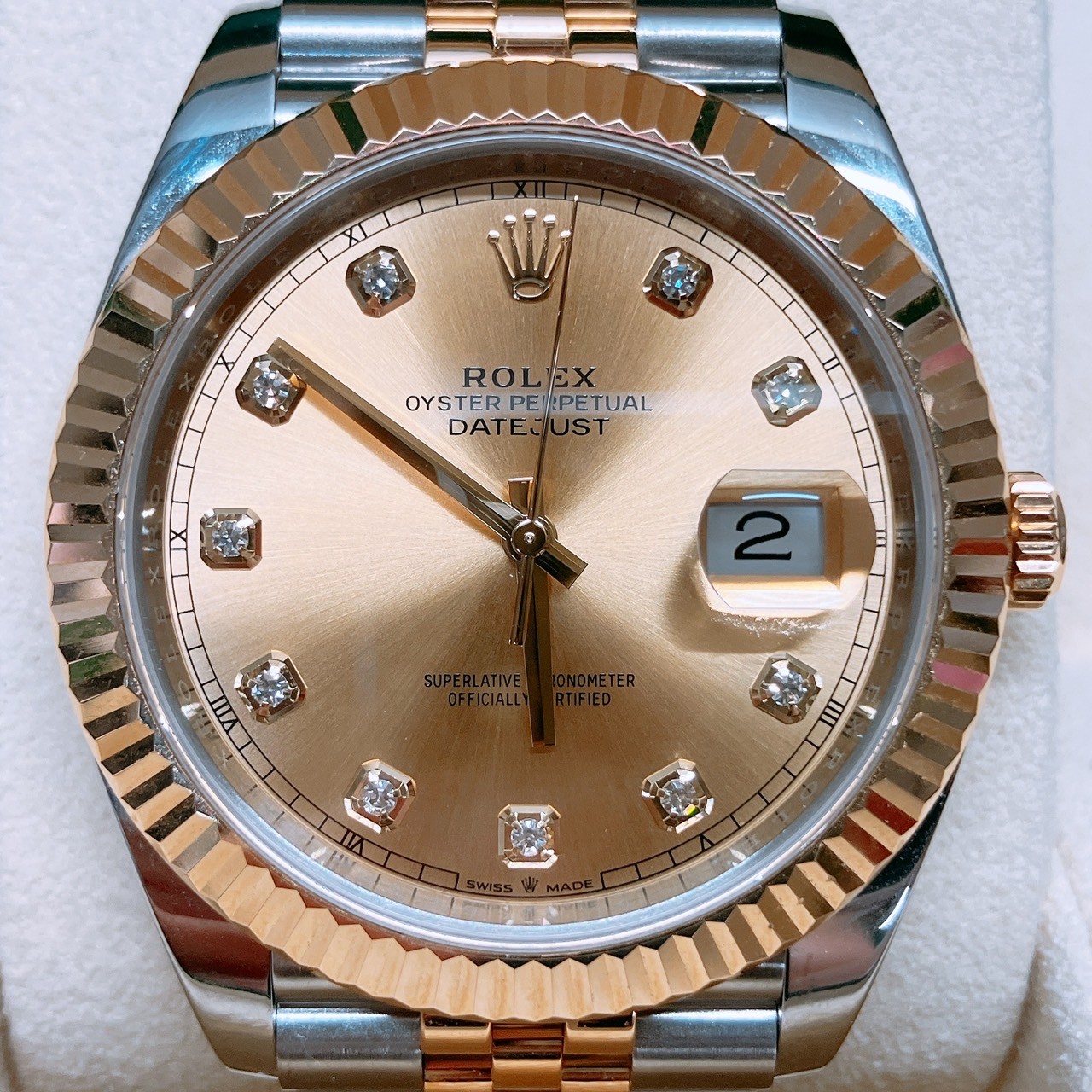 - <div>ご覧いただきありがとうございます!</div><div>おたからや小倉守恒店の迫です!</div><div>今回は福岡県北九州市小倉南区のお客様よりロレックス デイトジャスト 126333G ランダム を買取させていただきました!</div><div>ありがとうございます!</div><div><br></div><div><p>ロレックスの定番ドレスウォッチとして長年愛され続けている <strong>デイトジャスト Ref.126333G</strong>。洗練されたデザインと高い実用性を兼ね備えたモデルで、幅広い世代から支持を集めている人気の一本です。</p><p>ケースサイズは41mmで、存在感がありながらも腕元に自然に馴染む絶妙なバランス。ステンレススチールと18Kイエローゴールドを組み合わせたロレックス独自のコンビ素材「ロレゾール」により、スポーティーさと高級感を兼ね備えた華やかな印象を与えてくれます。</p><p>このモデルの大きな魅力のひとつが、文字盤にあしらわれたダイヤモンドインデックスです。インデックス部分には美しく輝くダイヤモンドがセッティングされており、光の角度によって上品にきらめき、腕元にラグジュアリーな雰囲気を演出します。ビジネスシーンはもちろん、フォーマルな場面でも存在感を放つデザインです。</p><p>ベゼルにはロレックスの象徴ともいえるフルーテッドベゼルを採用。18Kイエローゴールド特有の輝きと立体的なカットが特徴で、時計全体にクラシックで高級感あふれる印象を与えています。</p><p>ムーブメントには、ロレックスが誇る自社製ムーブメント キャリバー3235 を搭載。高精度で耐久性に優れ、約70時間のパワーリザーブを実現しています。また、日付は3時位置のカレンダーとサイクロップレンズにより大きく見やすく表示されるため、視認性にも優れています。</p><p>ブレスレットにはジュビリーブレスレットまたはオイスターブレスレットが採用される仕様があり、どちらもロレックスならではの高い装着感と耐久性を誇ります。しなやかで腕馴染みが良く、長時間の着用でも快適です。</p><p>デイトジャストは1945年に誕生して以来、ロレックスを代表するモデルとして世界中で愛され続けてきました。その伝統を受け継ぎながら、最新技術を取り入れた Ref.126333G は、クラシックな魅力と現代的な性能を兼ね備えた完成度の高い一本です。</p><p>高級感、実用性、そしてロレックスならではのブランド価値を兼ね備えたモデル。日常使いから特別なシーンまで、長く愛用できるタイムレスな腕時計です。</p> <div>おたからや小倉守恒店では、ジュエリーなどの貴金属はもちろん、ブランド品、商品券、家電など多種多様に</div><div>買取りを行っております。新品保管品は勿論、長年ご愛用されたお品物でも勿論査定させていただきますので</div><div>お買い物やランチなどのついでにお気軽にお立ち寄りください。スッタフ一同心より皆様のご来店おまちしております。</div> <br></div>
