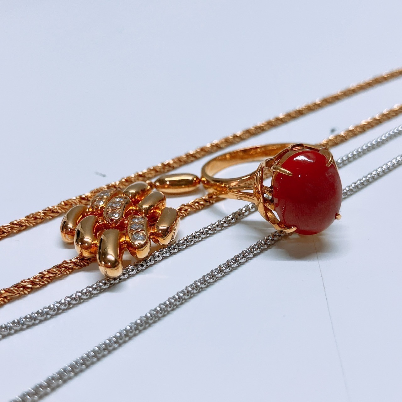 - 福岡県北九州市小倉南区のお客様 K18サンゴリングなどまとめを買取しました!