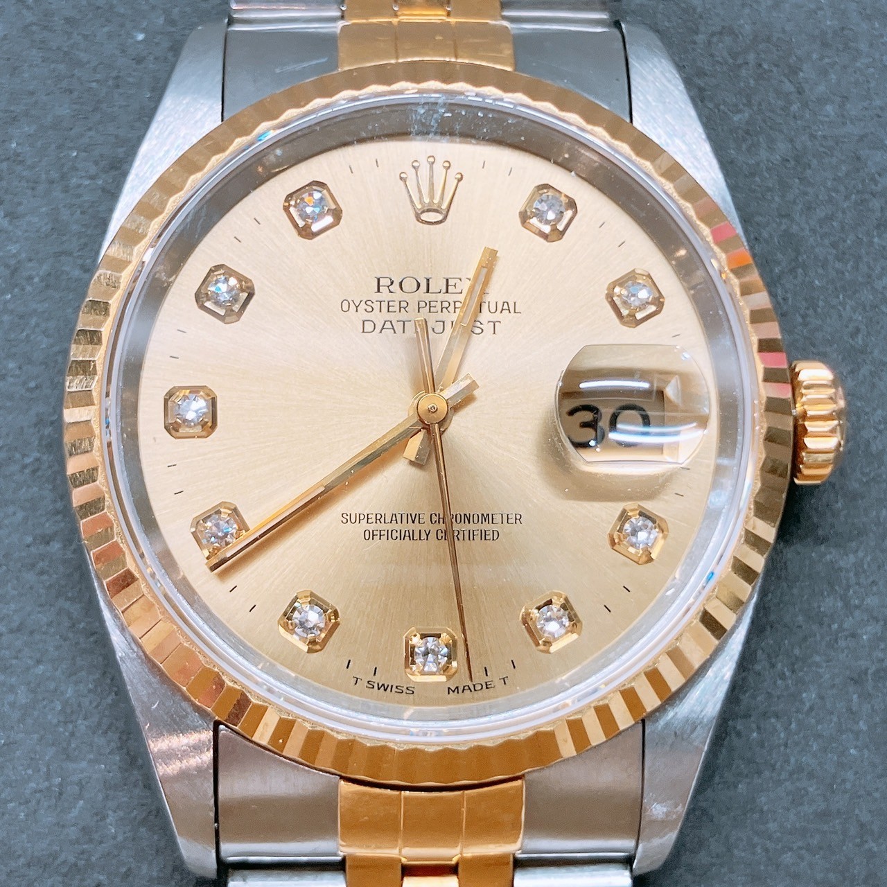 - <p dir="ltr">ご覧いただきありがとうございます。</p><p dir="ltr">おたからや小倉守恒店の田辺です。</p><p dir="ltr">今回は福岡県北九州市小倉南区のお客様よりロレックス デイトジャスト16233Gランダムを買取させていただきました。</p><p dir="ltr">ありがとうございます!</p> <p dir="ltr">1988年に登場したイエローゴールドコンビモデルのデイトジャストRef.16233。</p> <p dir="ltr">美しいカッティングが施されたフルーテッドベゼル、リューズ、ブレス中央部分には艶やかなイエローゴールドが使用され、腕元を明るくゴージャスに演出してくれる人気定番モデルになっております。</p> <p dir="ltr">前のモデル(Ref.16013)と比べ、搭載されているムーブメントは、テンプを一つのブリッジで支えるCal.3035から、ツインブリッジとなったCal.3135へと変更され、更なる耐久性が向上しています。</p> <p dir="ltr">時計業界でも優れたムーブメントとして名高いCal.3135は、その後も様々なモデルへと搭載されています。</p> <p dir="ltr">デザイン面では大きな変更点はないが、風防は強化プラスチックからサファイアクリスタルへと変わり、よりモダンな顔立ちとなり、気密性は向上し100mの防水性能を実現しています。</p> <p dir="ltr">また、10Pダイヤ仕様のダイヤルのみ1995年頃を境にダイヤの留め金部分が、正方形の形状からよりダイヤの存在感が強く感じられる八角形へと変貌をとげ、高級感が一段と向上していますね。</p> <p dir="ltr">カレンダー機能を搭載した実用性の高さと、イエローゴールドの輝き、ダイヤル、インデックスの豊富なバリエーションで腕元に個性とゴージャス感をアピールできるモデルとして人気はまだまだとまりません!</p> <p dir="ltr">みなさんのご自宅に、眠っているロレックスはありませんか?</p><p dir="ltr">おたからや小倉守恒店にお持ちいただけると、全力で査定させていただきます!</p><p dir="ltr">ご納得のいくお値段で買取りさせていただきますので、ぜひお待ちしております!</p><div><br></div>