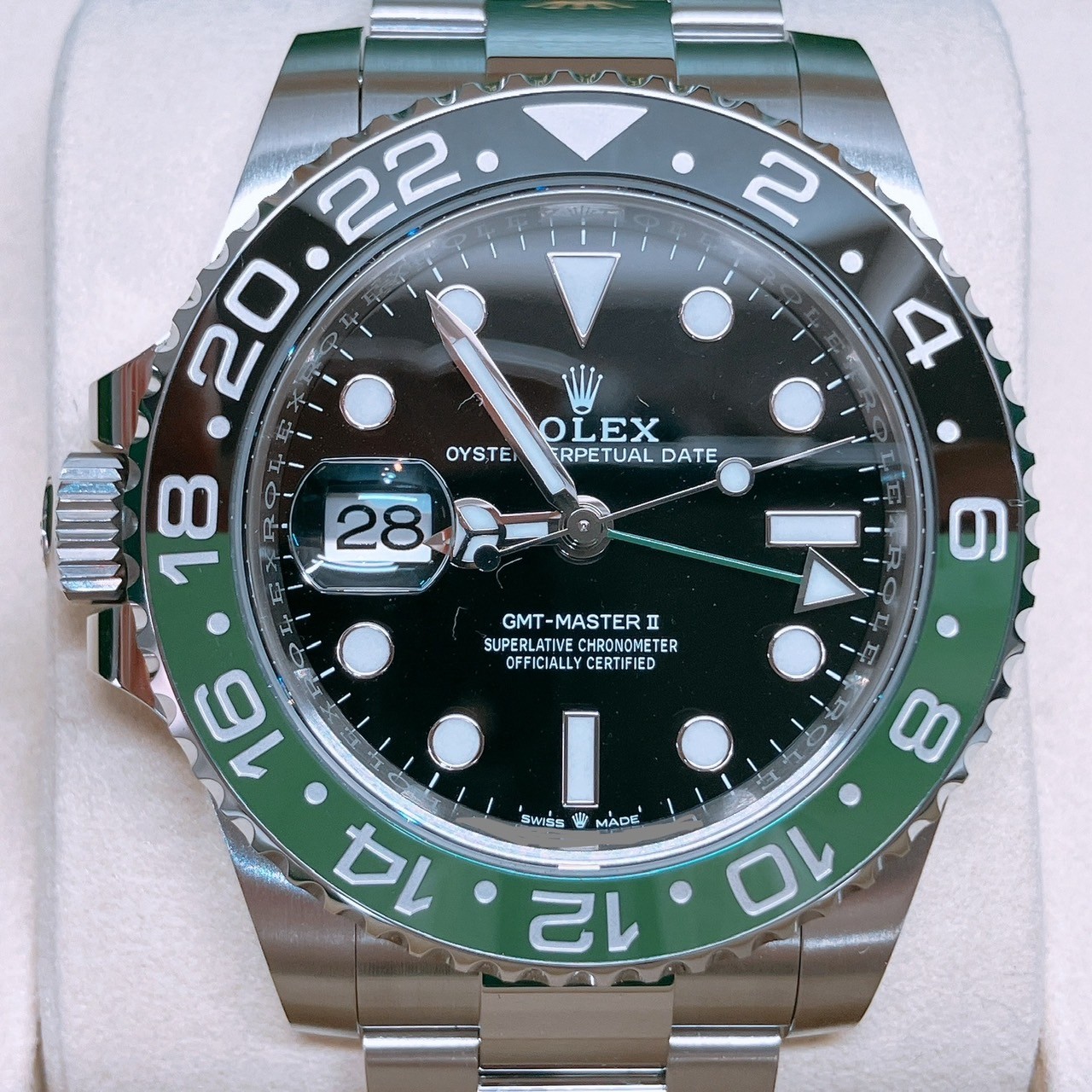 - <div>ご覧いただきありがとうございます。</div><div>おたからや小倉守恒店の植波です。</div><div>今回は福岡県北九州市小倉南区のお客様よりロレックス GMTマスターⅡ 126720VTNRを買取させていただきました。</div><div>ありがとうございます!</div><div><br></div><div>2022年、ロレックスの新作として打ち出されたGMTマスターII Ref.126720VTNR。 グリーン×ブラックのハイセンスなツートンカラーベゼルにも驚かされましたが、何と言ってもリューズが左側に搭載された「レフティ仕様」で、大きな話題になりました。 <br></div><div>また、例年ロレックスの新作モデルは発表から1~2か月ほどで国内市場に出回り始めるものですが、Ref.126720VTNRはなかなか流通せず。 <br></div><div>ついに並行輸入市場にも登場したと思いきや、ご祝儀価格も相まって、実勢相場600万円超という過去類を見ない値付けがなされました。 <br></div><div>少し落ち着いてきたとは言え、現在でもステンレススティール製モデルとしてはきわめて高値での売買が行われています。 <br></div><div>Ref.126720VTNRは2022年にロレックスが新作として発表したGMTマスターIIのレギュラーモデルです。GMTマスターIIについて補足を加えると、1954年に誕生した同名シリーズの進化版です。パン・アメリカン航空(パンナム航空)の要請によって、ロレックスが製造したパイロットウォッチがその祖となります。</div><div>GMTマスターの大きな特徴は、回転ベゼルを用いて、ローカルタイムの他に第二時間帯を表示させられるという多機能機であることです。なお、現在では時分針とベゼルを用いて複数時間帯を表示させる機能をGMT(Greenwich Mean Time、グリニッジ標準時のこと)ウォッチと称しますが、この原型となったのがGMTマスターと言われています。</div><div> <br> <div itemtype="http://schema.org/BreadcrumbList">以上、GMTマスターについてご紹介させていただきました。</div></div><div><br></div><div><div>おたからや小倉守恒店では、ロレックスなどの高級時計はもちろん、貴金属・ブランド品・商品券・古銭・古美術品・骨董品・切手・家電製品など多種多様に買取を行っております。</div><div>新品保管品は勿論、長年ご愛用されたお品物でも勿論査定させていただきますので、お買い物やランチなどのついでにお気軽にお立ち寄り下さい。</div><div>スタッフ一同心より皆様のご来店お待ちしております。</div> <br></div>