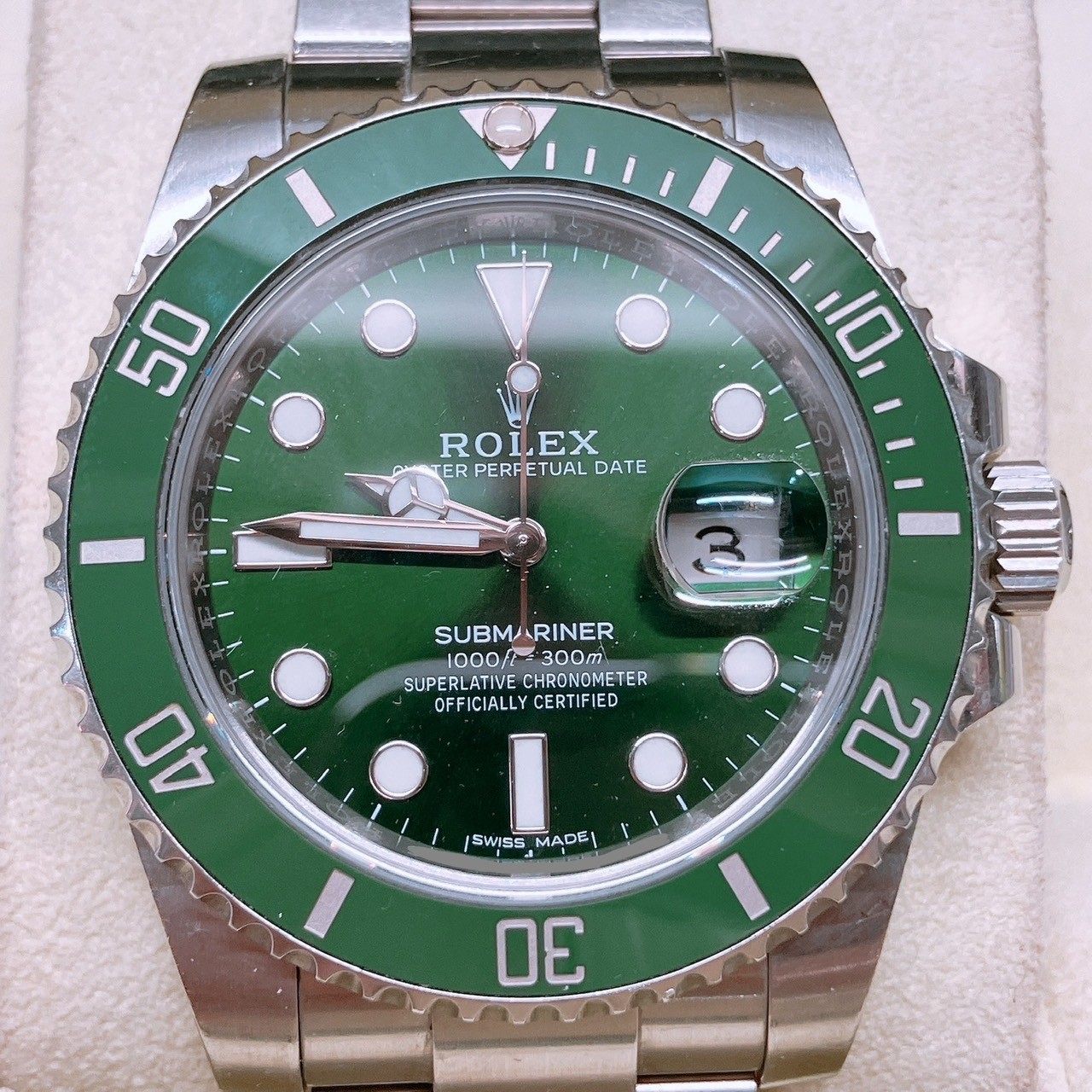 - ご覧いただきありがとうございます。 おたからや小倉守恒店の相原です。 <div>今回は福岡県北九州市小倉南区のお客様よりロレックス サブマリーナ 116610LV ランダムを買取させていただきました。</div><div> ありがとうございます! </div><div><br></div><div>ロレックスのコーポレートカラーであるグリーンを纏った「116610LV」は<br>愛好家の間でハルクの相性で親しまれている唯一無二の存在感を放つモデルです。</div><div><br></div><div>2010年から2020年までの約10年間のみ製造されたこのモデルは</div><div>先代の16610とは異なり ベゼルだけでなく文字盤にもグリーンを採用。<br></div><div>またこの文字盤にはサンレイ仕上げという光の角度によって表情を変える加工があるので</div><div>深みのあるグリーンからエメラルドグリーンまで 楽しむことができます。</div><div><br></div><div>また、ロレックスは昨今のコピー品対策から新たに2010年頃から</div><div>製造年代に関わらず ランダムのシリアルを導入するようになりました。</div><div>同時期からそれまで6時方向のフラッシュフィットを外して確認していたシリアルが</div><div>文字盤の中のルーレット刻印に移行したことで比較的新しいモデルであること</div><div>よりコピーしにくい製造にシフトしていったとも言えます。</div><div><br></div><div>機能面においても、116610LVはダイバーズウォッチの完成形として高いスペックを誇ります。</div><div>ベゼルには耐傷性と耐食性に優れたセラミック製の「セラクロムベゼル」を採用。</div><div>プラチナの特殊コーティングが施された目盛りは、長年使用してもその美しさを失いません。</div><div>また、ブレスレットには工具なしで微調整が可能な「グライドロッククラスプ」が装備されており、</div><div>実用性においても一切の妥協がありません。</div><div>内部には傑作ムーブメントと称される「Cal.3135」を搭載し、</div><div>堅牢さと高精度を両立させている点も、世界中のプロフェッショナルやコレクターに愛され続ける理由です。 <br></div><div><br></div><div>当店はブランド品はもちろん、時計・貴金属・アクセサリー・商品券・切手・古銭・古美術品・家電製品など多種多様にお買取りを行っておりますので、お気軽にお立ち寄りください。 スタッフ一同皆様のお越しをお待ちしております。 <br></div>