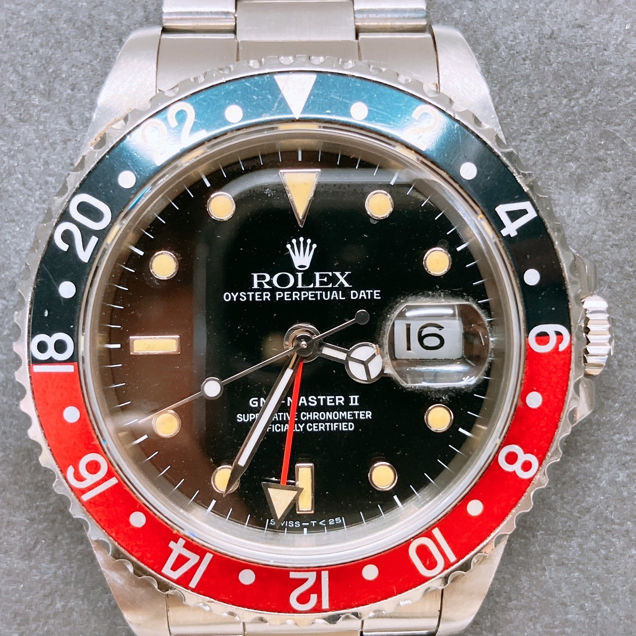 - ご覧いただきありがとうございます。 おたからや小倉守恒店の相原です。 <div>今回は福岡県北九州市小倉南区のお客様よりロレックス GMTマスターⅡ 16710 N番を買取させていただきました。</div><div> ありがとうございます! </div><div><br></div><div>ロレックスのパイロットウォッチとして絶大な人気を誇るGMTマスターⅡ<br>その中でも5桁のこちらの16710は現行モデルにはないクラシックな佇まいが</div><div>人気のひとつでもあると思います。1989年ころからおよそ20年ほど</div><div>数多く出回ったお品物ではありますが、あえて5桁が欲しい!という愛好家も多いモデルです。</div><div><br></div><div>夜光塗料に「トリチウム」が使用されている個体が多い点も、アンティークファンには堪らない要素です。</div><div>時を経て経年変化を見せるインデックスや針の風合いは、現行のルミノバ夜光では決して味わえない、</div><div>その時計だけが歩んできた歴史を物語っています。 <br></div><div><br></div><div>N番が製造された1990年代初頭は、ブレスレットのクラスプがシングルロックからダブルロックへと移行していく時期でもあり、</div><div>細かな仕様の違いによって個体の表情が異なるのもこのモデルの面白いところです。 <br></div><div><br></div><div></div>安定した精度とメンテナンス性の高さから、数十年が経過した現在でも現役で活躍し続けるタフさは、まさにロレックスの真骨頂といえるでしょう。<div><br></div><div>当店はブランド品はもちろん、時計・貴金属・アクセサリー・商品券・切手・古銭・古美術品・家電製品など多種多様にお買取りを行っておりますので、お気軽にお立ち寄りください。 スタッフ一同皆様のお越しをお待ちしております。 <br> <div><br></div></div>
